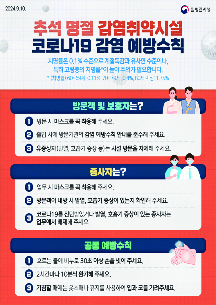 추석 명절 감염취약시설 코로나19 감염 예방수칙