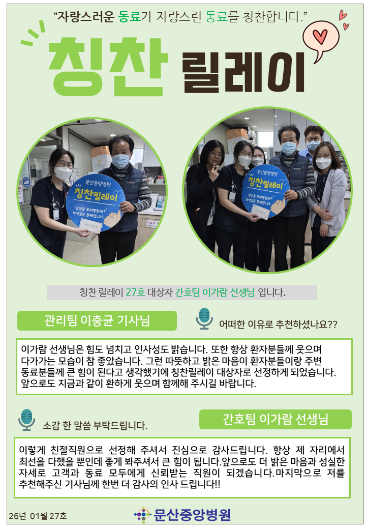 26년 01월 제 27호 칭찬릴레이 시상